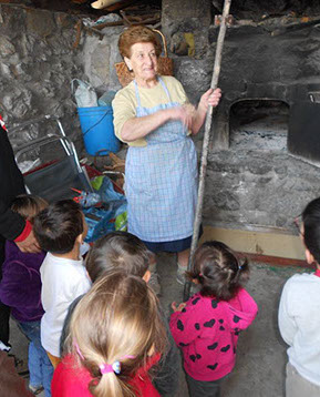 Maritxu gestiona el caserío al estilo tradicional diversificado: cuidando de sus animales, prados, huertas y campos. Además los fines de semana prepara pan en el horno tradicional situado frente al caserío.